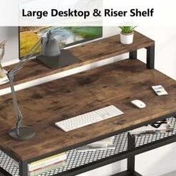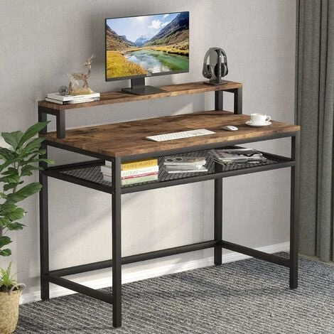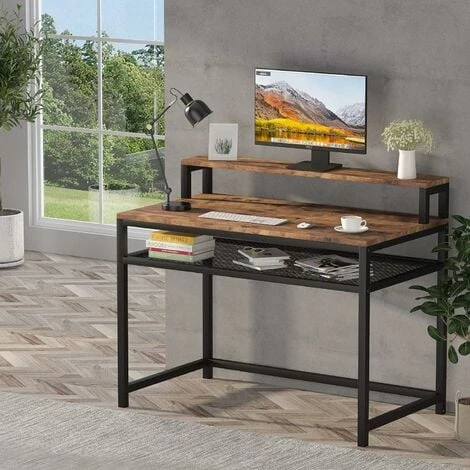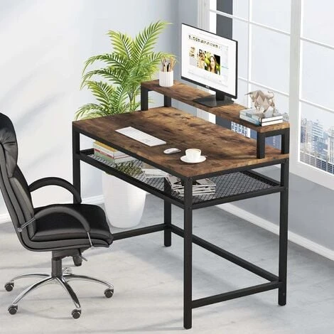 Bureau de travail avec étagère de rangement et support de moniteur : Fournit des hauteurs et de l’espace supplémentaires, vous pouvez sélectionner de mettre vos articles sur l’étagère de rangement solide en fil de fer solide en gaze de fer selon vos préférences.