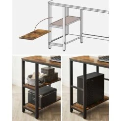 - Étagères réversibles : Les étagères peuvent être installées à droite ou à gauche. En plus, vous pouvez retirer la planche du milieu pour y placer votre unité centrale, ou la laisser pour ranger des livres, des dossiers ou d’autres affaires