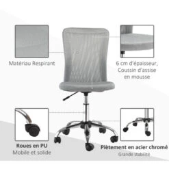 – Fauteuil pivotant à 360 ° et 5 roulettes multidirectionnelles : mobilité accrue au bureau
