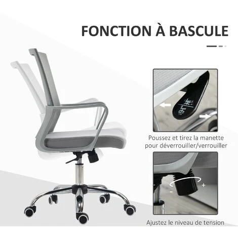 – Fauteuil pivotant à 360 ° et 5 roulettes multidirectionnelles : mobilité accrue au bureau