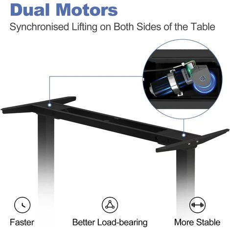 -Grâce aux 2 moteurs. le bureau électrique peut se lever et s’abaisser de manière synchrone en douceur à une vitesse de 25 mm/s.