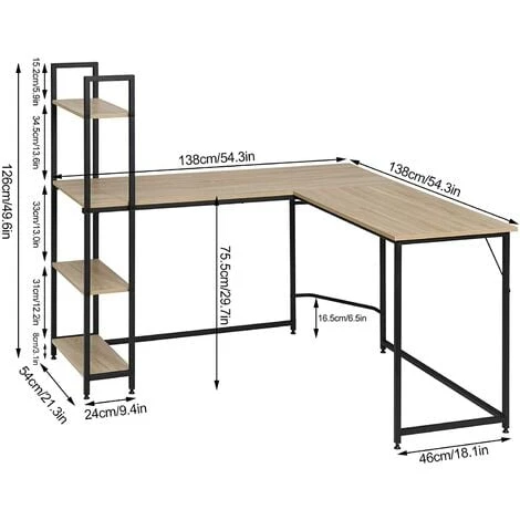 - Grand bureau : En forme de L. ce bureau d’angle WOLTU se compose de 2 panneaux de 138×50 &. 88x50cm (Lxl). La zone d’utilisation spacieuse vous permet de poser plusieurs moniteurs. imprimantes. etc. Selon vos besoins. cette table L peut être transformée en bureau. en bureau d’ordinateur. en table d’étude ou en bureau gaming